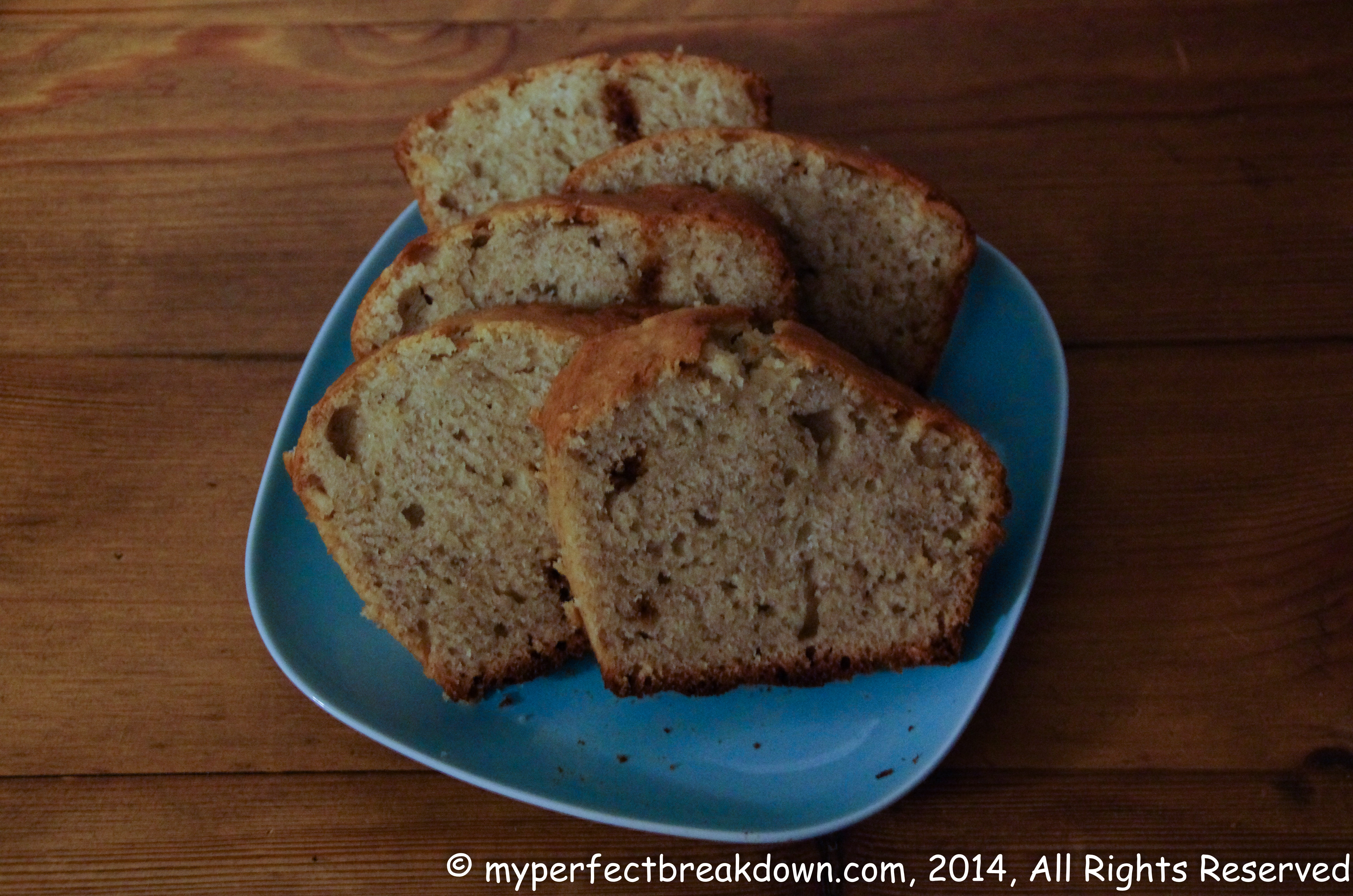 Day 122 – November 5, 2014: Yummy homemade, gluten filled cinnamon banana bread.