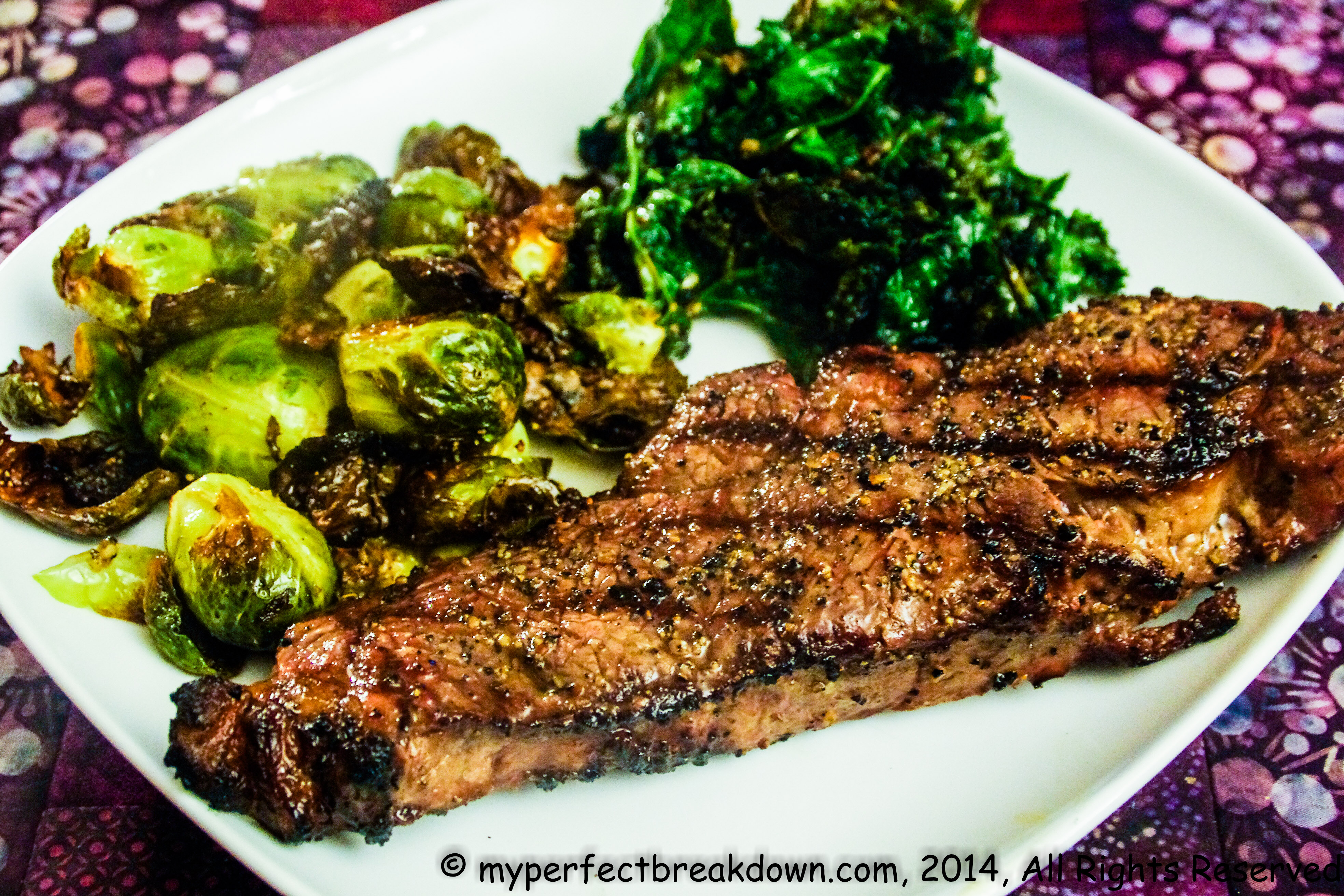 Day 160 – December 13, 2014: Mr. MPB made a simple supper, while I relaxed and watched reruns of Gilmore Girls. Our delicious meal consisted of garlic sautéed kale, oven roasted Brussel-sprouts and yummy barbequed steak of which I could only eat half of mine because it was so giant. Yummy food, cooked by someone else, always makes me happy!