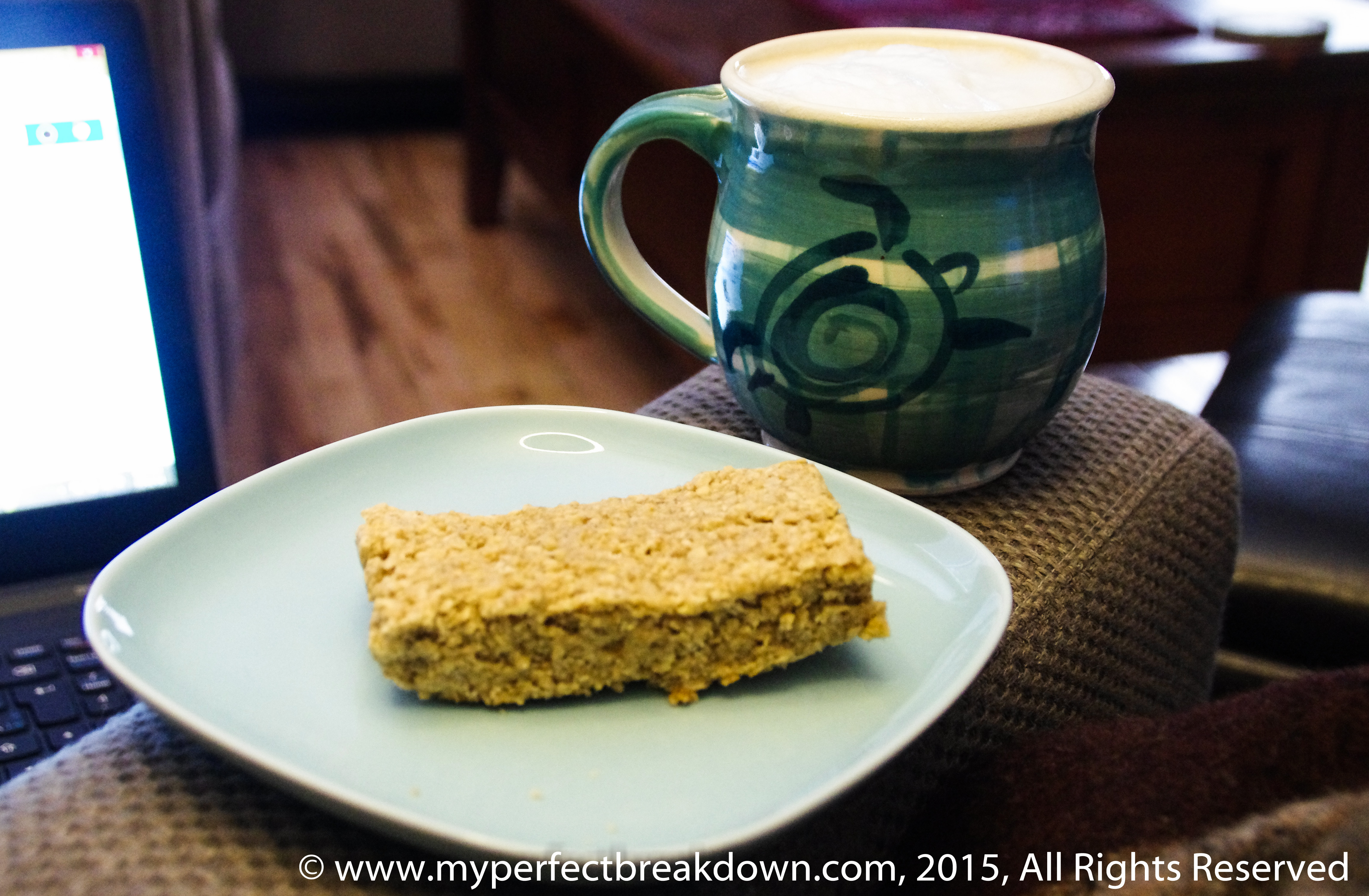 Day 213 – February 4, 2015: Today was not a good day. My happiest moment was first thing in the morning when Mr. MPB brought me a homemade chai tea latte and homemade replica Starbucks oat bar.