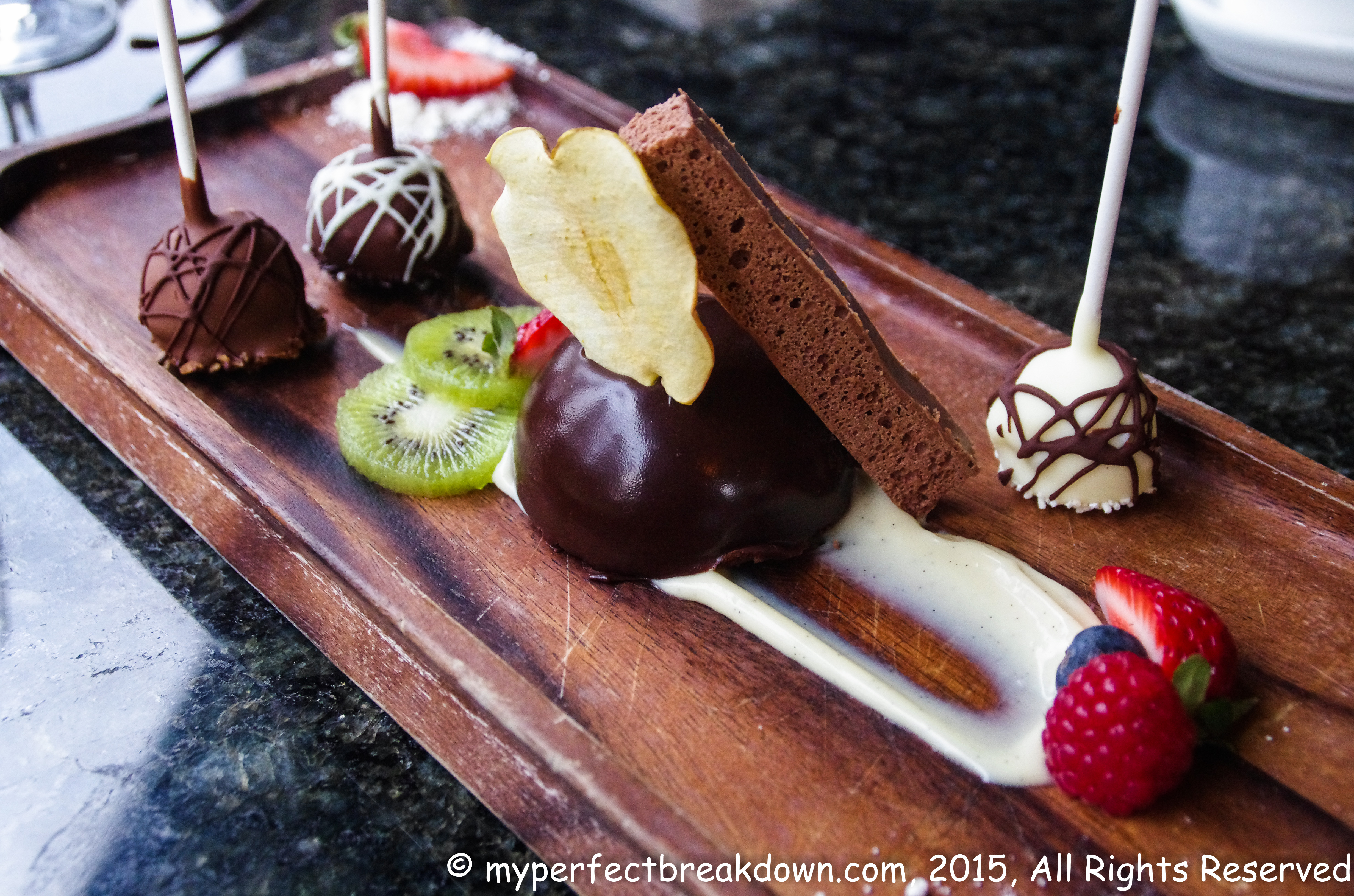 Day 338 – June 9, 2015: Tonight we celebrated some good news with dinner at a 5 star restaurant, my chocolate desert was amazing! And as an added bonus we used a coupon I found online to get our meal for 50% off.