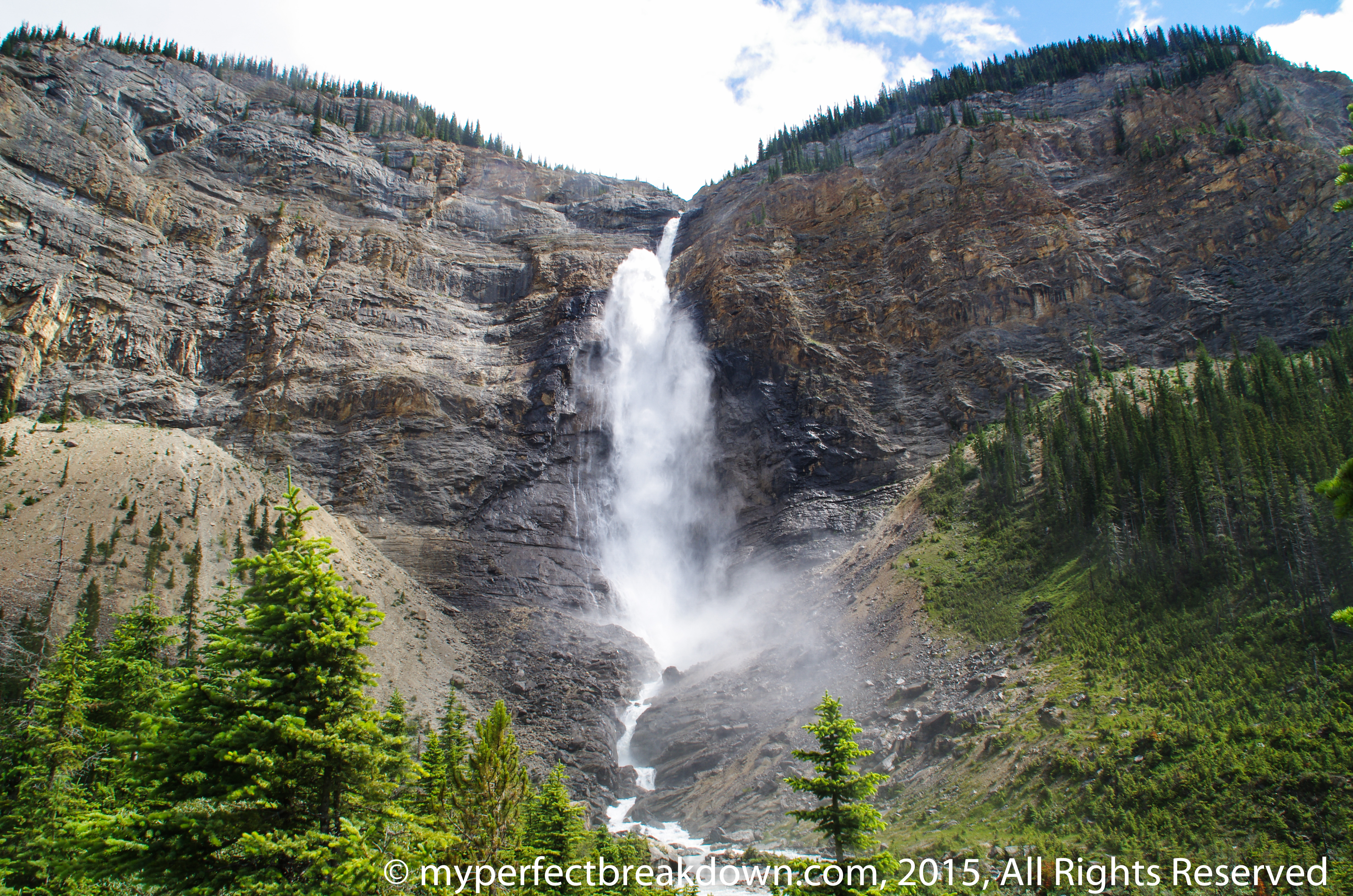 Day 364 – July 5, 2015: On our way back to home we stopped off to see the Takakkaw Falls. Watching nature’s awe inspiring beauty was definitely brought me a few moments of happiness.
