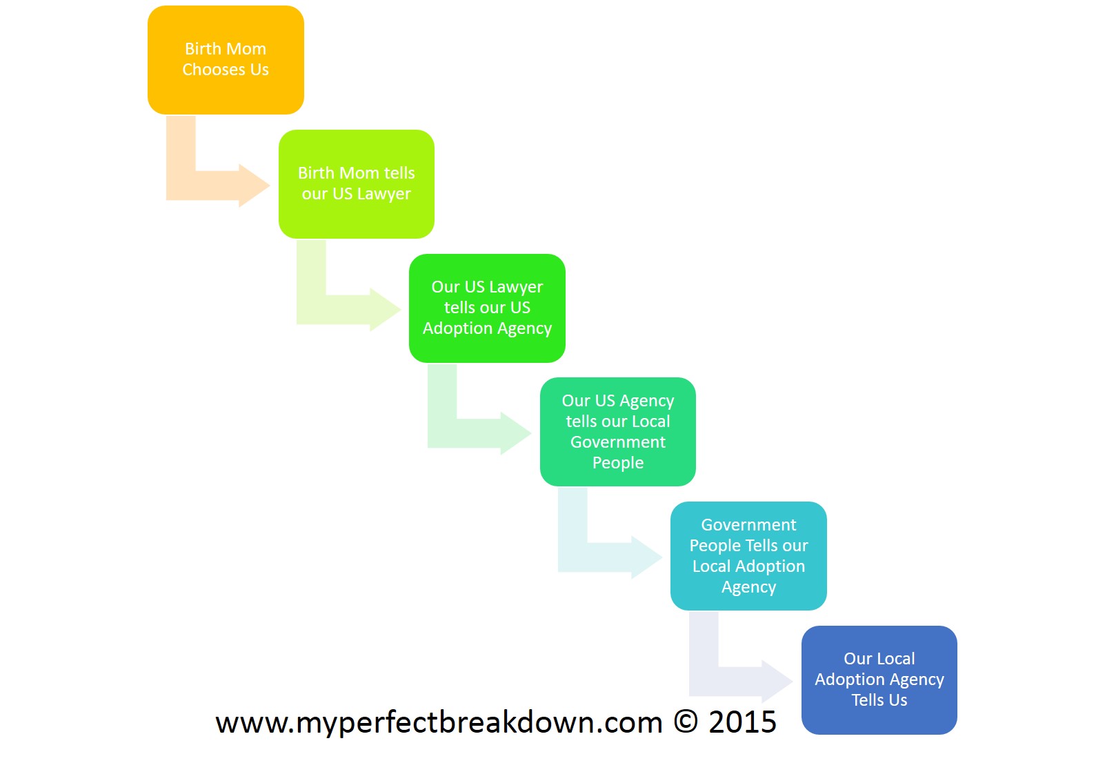 We were left to figure out the USA emergency passport paperwork on our own.  We figured out the inter-state adoption rules largely on our own.  We developed our own interview questions for agencies.  We developed our own process charts, tables and checklists to try to navigate the process.