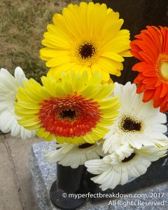 I picked up some Gerber Daisies because they are my favourite flowers. I picked some white ones with a few bright coloured ones, because bright daisies always make me happy, sense why they are my favourite.