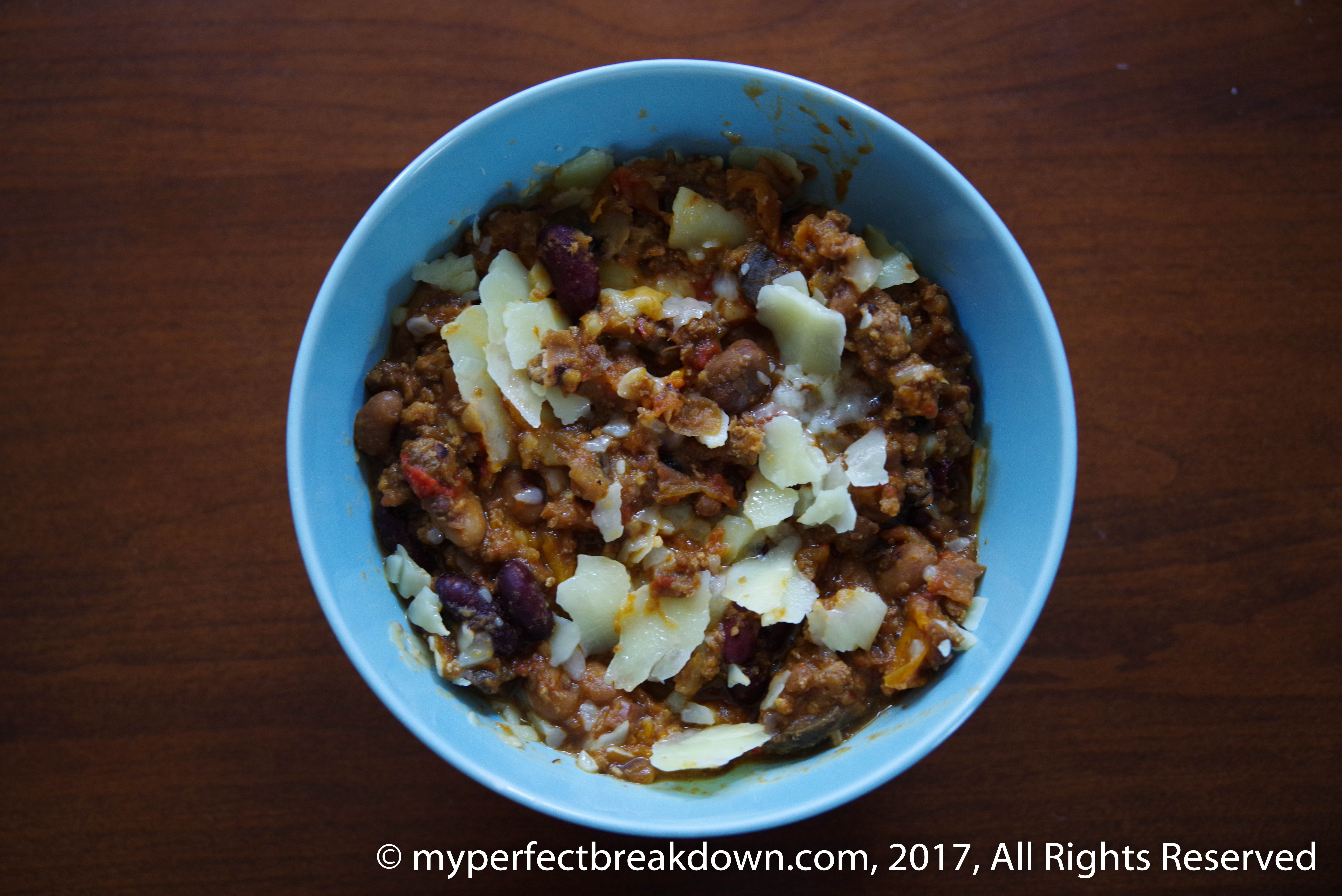 Day 11: September 11, 2017: Home-made chili from the freezer. The Adult MPB’s thought the meal tasted great and loved how easy it was to make. unfortunately Little MPB absolutely hated chili! As in, he hated it so much that we may never attempt giving him chili ever again. He ended up eating some yogurt, toast and fruit.